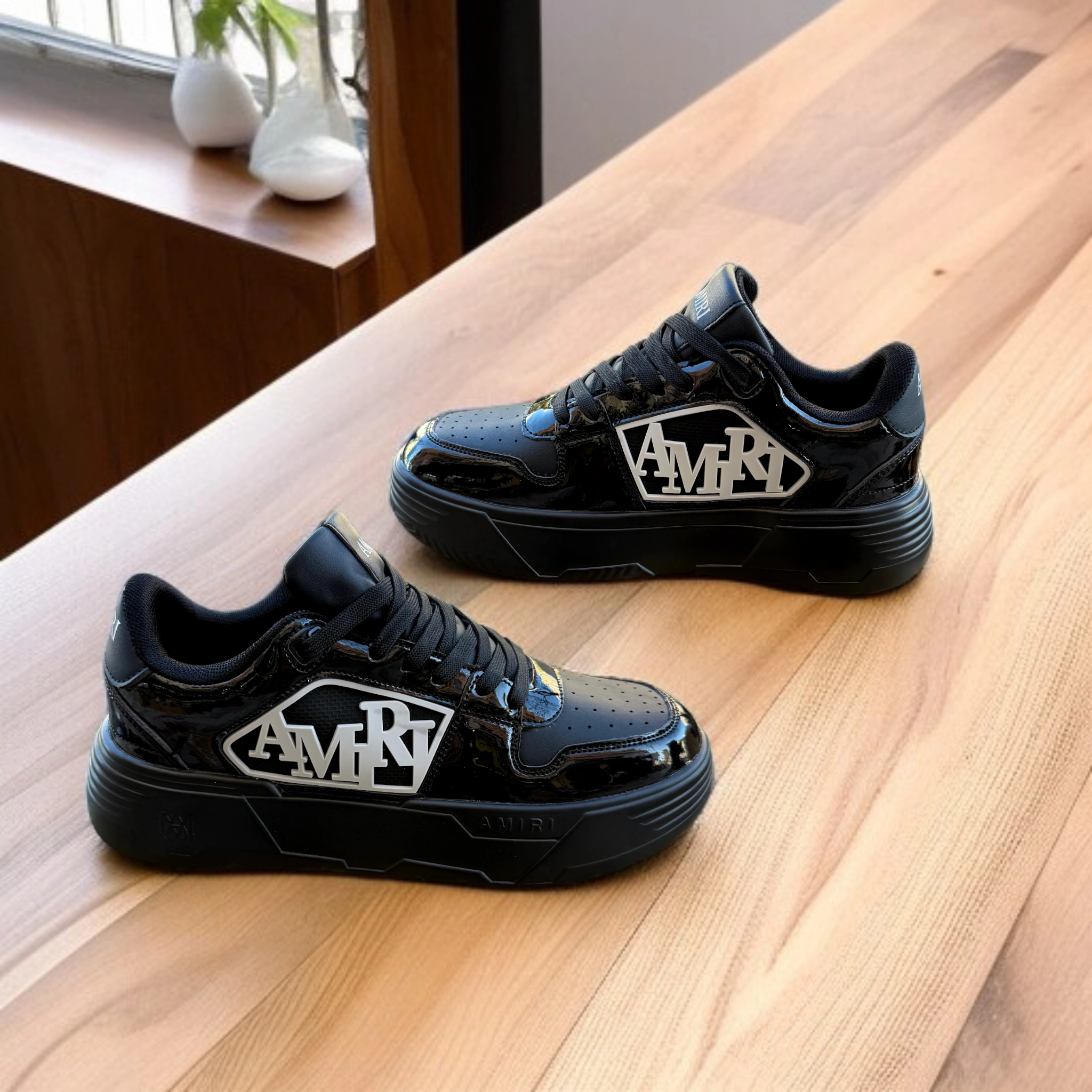 التصميم: حذاء AMIRI “قلاصي” لامع يمنحك إطلالة فخمة وجذابة.