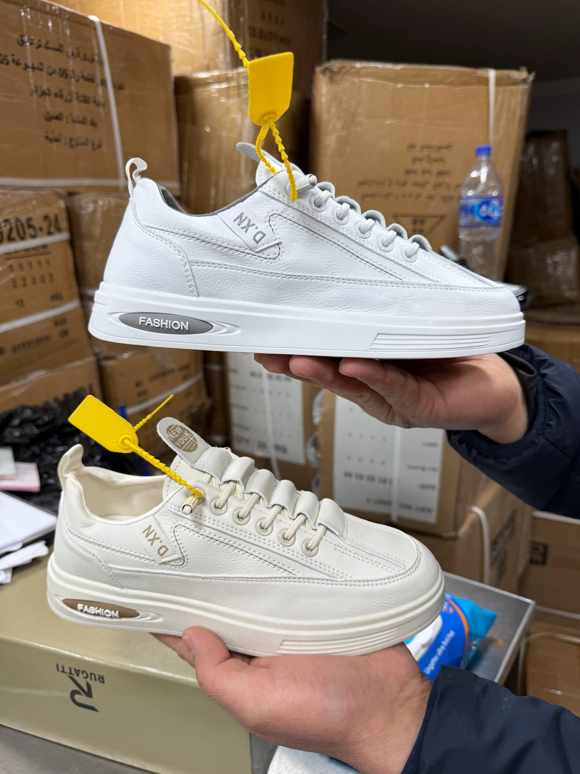 ✅ افتح الطلبية وقلب سلعتك قبل ما تخلص. ✅ الألوان المتوفرة: أبيض مع الأسود / أبيض مع الرمادي / بني فاتح (Beige). ✅ المقاسات: 39 – 40 – 41 – 42 – 43. ⚠️ تنبيه هام حول المقاس: القالب صغير (Moule Sghir). ننصحك تدي نمرة زايدة على مقاسك المعتاد (مثلاً: إذا تلبس 41 كوموندي 42 باش يجيك مريح).