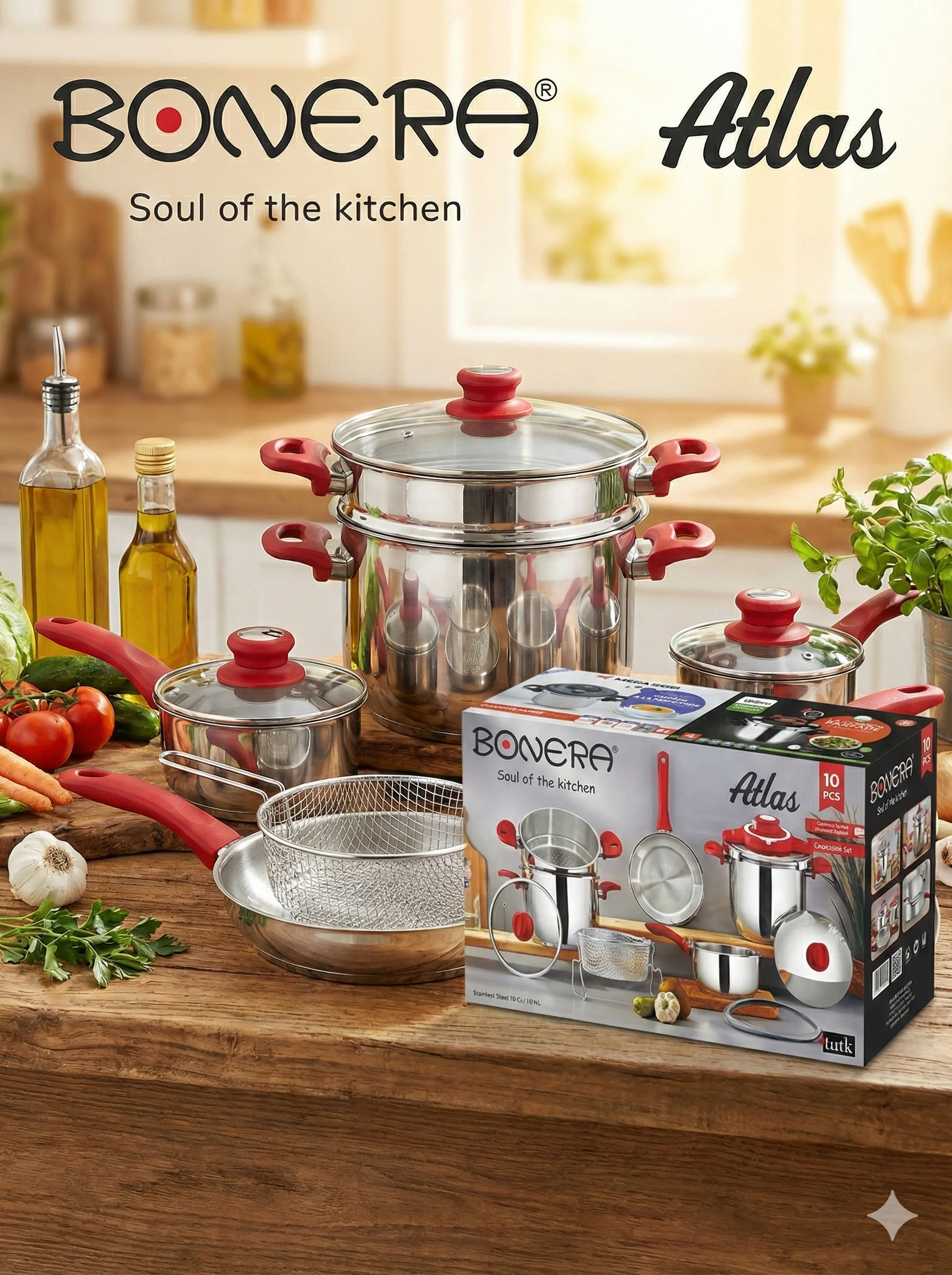 طقم أواني بونيرا أطلس (Bonera Atlas) الأصلي – 10 قطع إينوكس 18/10